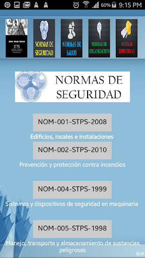 Kesehatan: Di daerah ini, delapan standar telah diklasifikasikan, yang terutama ditujukan untuk mencegah penyakit kerja, berdasarkan pengakuan, evaluasi dan kontrol agen kimia, fisik atau biologis yang hadir di lingkungan kerja.