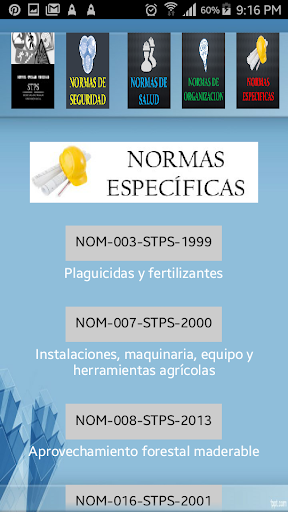 Spesifik: Tujuh aturan yang membentuk item ini difokuskan pada cabang kegiatan spesifik, seperti kegiatan pertanian, penggergajian, jalur kereta api dan tambang; Menjelaskan kontennya aspek keselamatan dan kebersihan yang paling penting dan umum yang harus diamati untuk melestarikan kehidupan dan kesehatan pekerja.