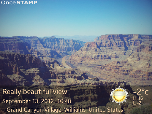 Once Stamp Camera can help you remind "where","when" and the "weather condition" of the moment the photo has been taken.