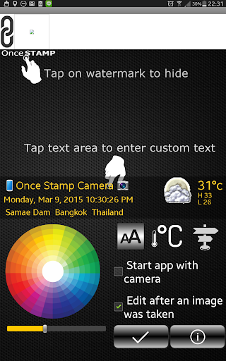 Once Stamp Camera will automatically find your current Date,Time,Address in details and Weather condition