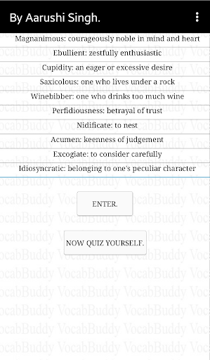 VocabBuddy helps you revise new words by taking the words and meanings you enter and creating a verbatim quiz out of them.