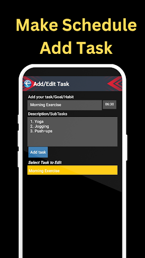 Add Task: Creating a daily routine has never been easier. Simply use the add task button ( ) to add tasks to your home screen. You can add as many tasks as you need to ensure that you stay on top of everything.