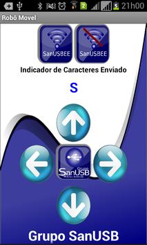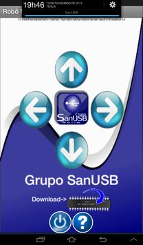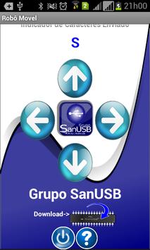 Ao pressionar as teclas, o aplicativo envia os seguintes bytes ASCII de forma serial via bluetooth: FRENTE ("L"), TRÁS ("T"), DIREITA ("D"), ESQUERDA ("P") e PARAR ("S") que também são mostrados na tela do aplicativo após serem enviados. É possível também baixar programas exemplos para o microcontrolador .zip, como também acessar o grupo SanUSB através do próprio aplicativo.