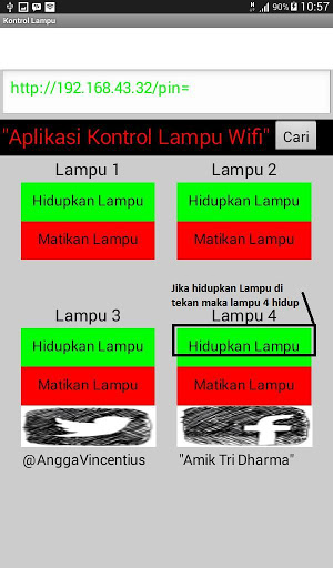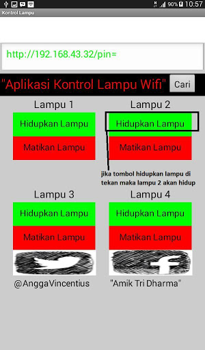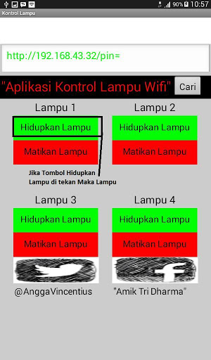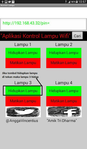 Angga Vincent merupakan salah seorang mahasiswa AMIK TRI DHARMA PEKANBARU jurusan Teknik Komputer yang merancang alat sistem kontrol lampu ini koneksi menggunakan wifi menggunakan modul esp 8266 dan dikendalikan menggunakan aplikasi Android ini