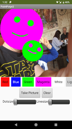 You can colour your picture and take a photo of something and colour it with a bunch of colours like Magenta, Red, Green, Light blue Blue and more! If you are done with a colour you can press clear and whoosh everything (except for the picture) is gone!