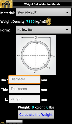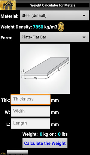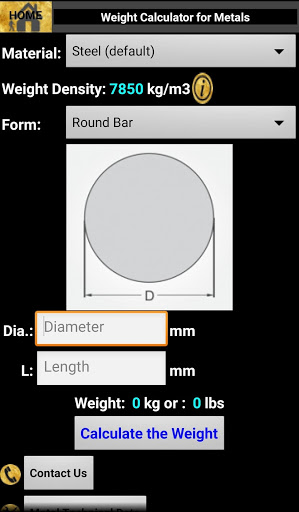 This app is mainly built for educational purposes. It helps the user to calculate the metal's weight based on the form and sizes. It also contains various information of Metals and their application.