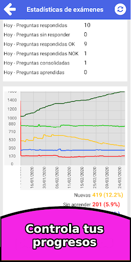 - Genera exámenes solo con preguntas que aun no has aprendido, con las que peor sabes, o llevas mas tiempo sin responder, etc.