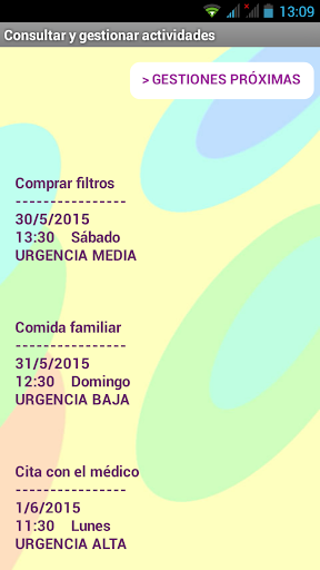 - Puedes CONSULTAR todas las notas o actividades que tienes programadas para la fecha que quieras, todas las gestiones a llevar a cabo para la próxima semana o todas las gestiones planificadas para cualquier mes.