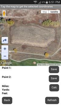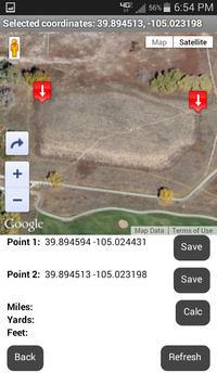 app by CodeKayak uses a unique two-point distance calculation, which is completely independent of your current location. Most applications require you to have your GPS enabled and then provide you with the distance from your current location to a desired location of your choosing. The Distance Calculator app allows you to simply pick and save two points on the map and then press "Calc". Your selected measurement will be displayed in miles, yards and feet.