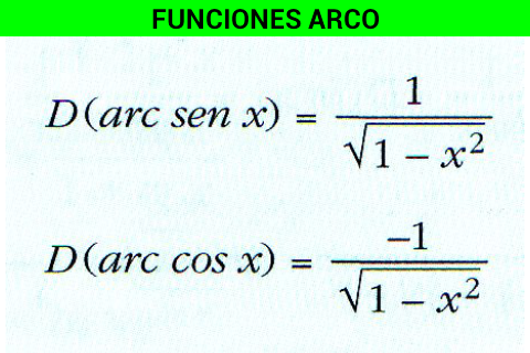 Aparecen ordenadas por familias de funciones, desde potencias hasta exponenciales y logarítmicas, pasando por funciones trigonométricas y funciones arco.