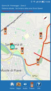 - di visualizzare la posizione del proprio veicolo sulla mappa, aggiornando la posizione, e visualizzando la distanza dalla zona a scout-speed;