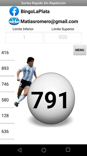 Con esta aplicación los sorteos se realizan de forma aleatoria y podrás elegir si los números se repiten o no. En esta versión no se visualizarán los números sorteados.
