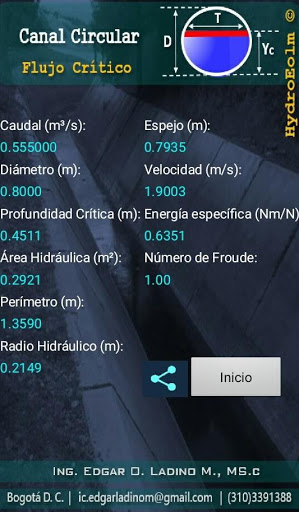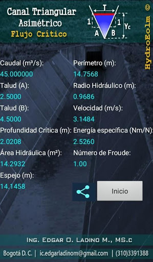 número de Froude es igual a uno (1) y en la cual la energía específica es mínima, solución obtenida a partir de Newton Raphson.