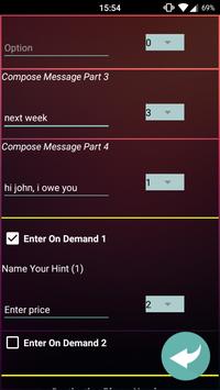 There are 2 options for a hint. These are used when you need to make a slight change to the message on occasions, then when you press the button to send, you will be asked for a value. The message (hint) you get will be what ever you entered on the 'Create' screen.