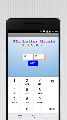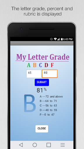 The application uses the standard percentile letter grade to convert a numeric score. It takes the score and the total to display the corresponding letter grade. It also displays the rubric for the five letter grade A, B, C, D and F according to the total score