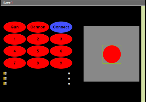 This app includes 11 buttons for various functions, 3 sliders for controlling servos or pulse width modulation signals, and 1 joystick to control motors or other similar devices.