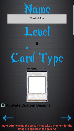 Give Your Card a name! Decide what level and Cardtype your Monster will be.