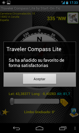 Traveler Compass Lite también le permite guardar un sitio favorito,