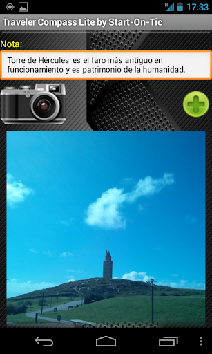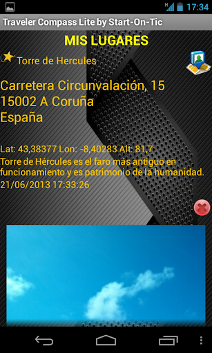 con sus coordenadas, dirección (si se hace uso de la tarifa de datos), altitud, un título, una descripción y una fotografía del entorno. Siendo esta una herramienta potente si se encuentra fuera de su entorno con la que podra poder volver a ese sitio demarcado como favorito (Ubique su hotel, la casa de su amigo o cualquier cosa ubicación a la que desee volver.