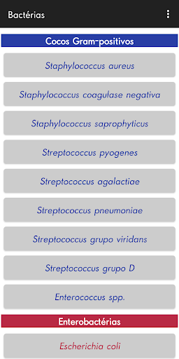 Este aplicativo foi desenvolvido com o objetivo de auxiliar alunos na aprendizagem da identificação fenotípica das principais bactérias de importância médica.
