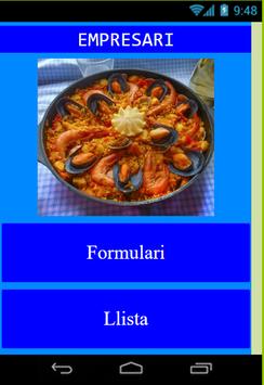 Aplicació dissenyada per la gestió d’encàrrecs d’un restaurant. L’aplicació té dos funcions, el mode per a l’empresari, i el mode per al client. En el mode de l’empresari hi tenim dos apartats, l’apartat formulari de l’empresari podrá escriure els encàrrecs de la gent, a l’apartat de llista, podrá veure tots els encàrrecs actius que s’han guardat.