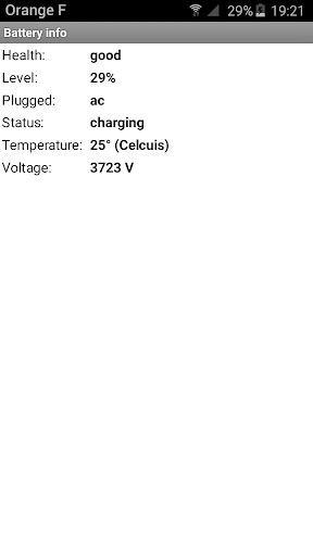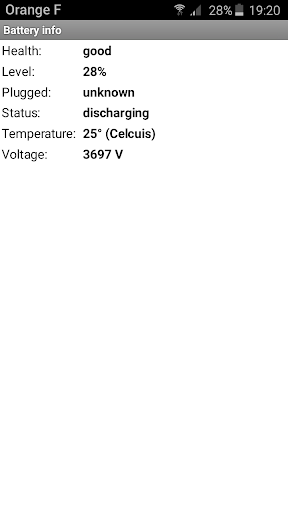 Mała aplikacja, która pozwala mieć wiele informacji o baterii jako jego poziom, temperaturę, napięcie i inne ustawienia.
