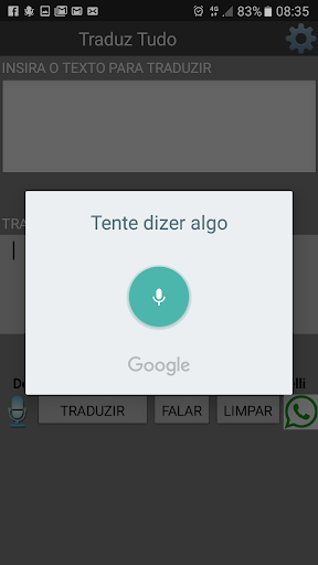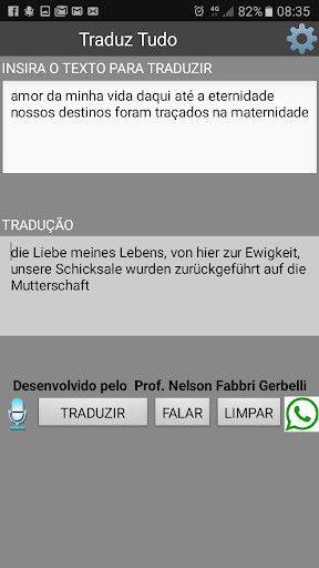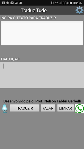 Tradutor de idiomas. Traduz do Português para um dos idiomas disponíveis: Alemão, Espanhol, Inglês e Italiano. Realiza a leitura da tradução. Compartilha a tradução com o aplicativo WhatsApp caso deseje.