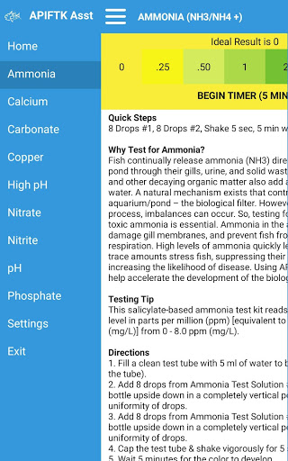 - Contains information for Ph, Ammonia, Nitrite, and Nitrate