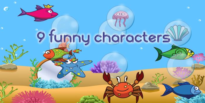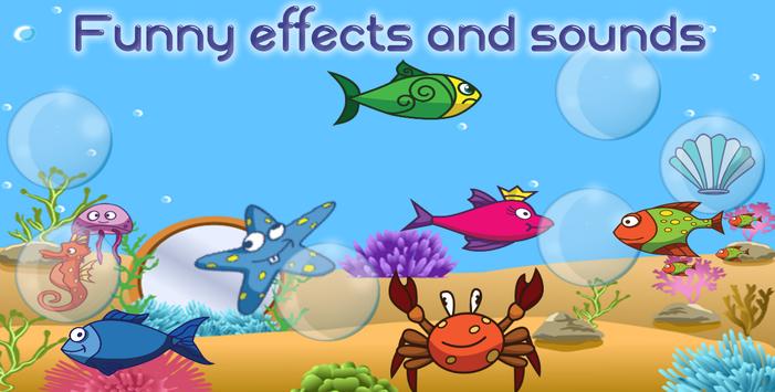 Find out colored fish, the crab, the jellyfish, the starfish and more... touch bubbles or any point on the screen for sounds and effects.