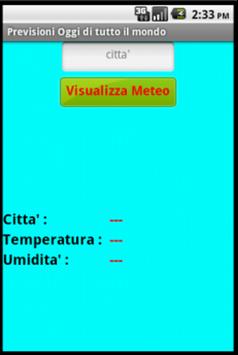 METEO Oggi, facile app per la visualizzazione del meteo oggi in tutto il mondo; inserisci una città o un paese ed aggiorna il meteo...