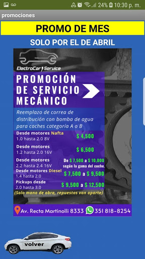 App de taller mecánico, ubicado Cordoba, con detalles de fotos y productos que ofrece