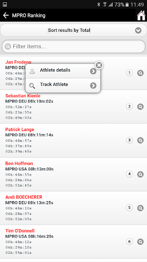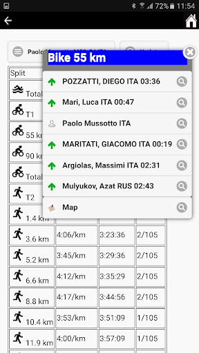 Ia juga mungkin untuk memeriksa kedudukan separa untuk setiap disiplin individu (berenang basikal dan menunggang)