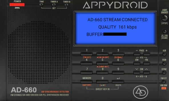 This App streams the new Hacked radio discovered by AppyDroid Development, It is then reversed using a NUX Time core pedal and sent to the App in near Realtime over a super fast 100mbps Upstream which can Cope with 1000's of continuous connections with a Uptime of around 95% The Stream is direct from AppyDroid server so we have full control over the stream and Maintenance with as little interruptions as possible, We may without user discretion chance the sound periodically to further enhance the sound. The App has a 15 minute auto reconnect to ensure you have the best Sync with our server As with Streaming latency the Sync can cause some delay in reaching your device and may disconnect if Wifi or Data is lost in stream so to avoid Buffered repeating we have the 15 minute reconnect procedure which may cause a small noticeable pause of around 500ms Whilst the stream is resynced with the server, Depending on connection speed this may not be noticeable for some and is not a malfunction.