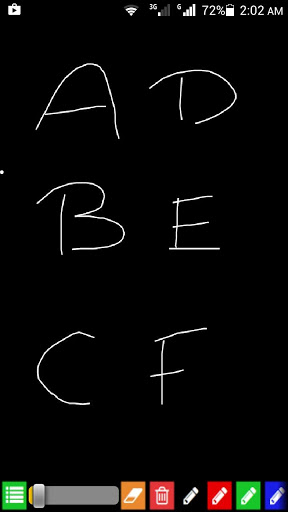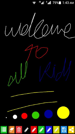 dot/pointer sizes and line thickness. It also allows you to share your drawings with social media like google , facebook, witter, whatsapp. Black Board is an best application for smooth writing and drawing. You can easily draw sketch and write notes with finger on touch. Now you can change blackboard background. Long Touch on color pencil button for change background and also change line thickness long press the eraser button to change line thickness or normal line.