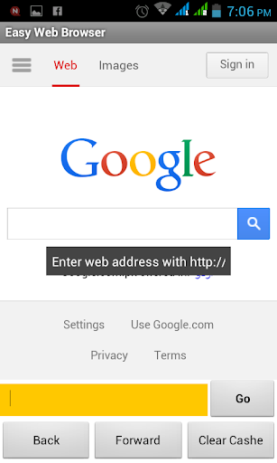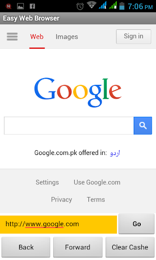 Easy web browser is a simple browser. User can visit website with easy method and you can clean cache with on click.
