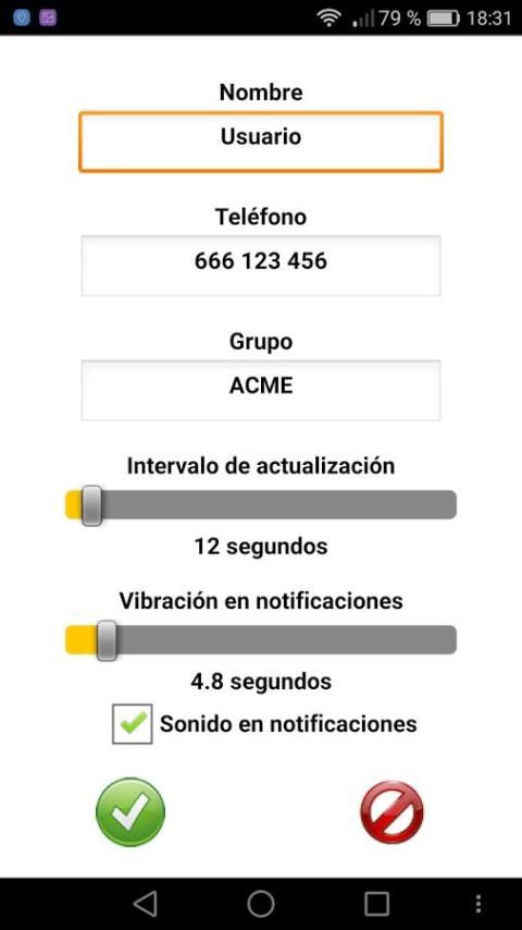 From the configuration screen you can customize the update intervals of your position on the map, and if you want to receive notifications with vibration or voice. All very intuitive and grouped on the same screen.