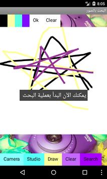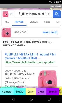 Search for an image online by taking a photo from cam, browsing studio, or simply by drawing.