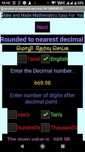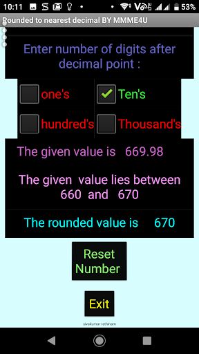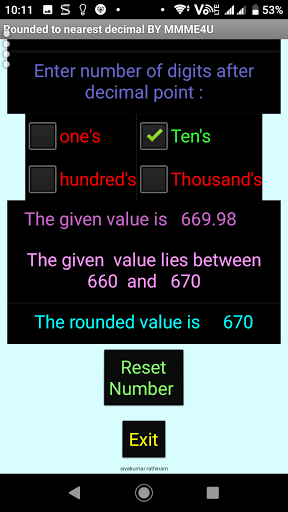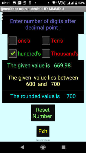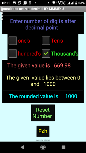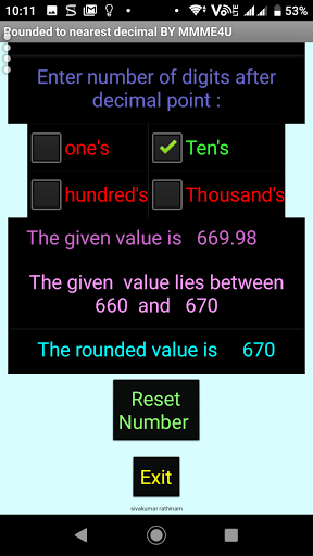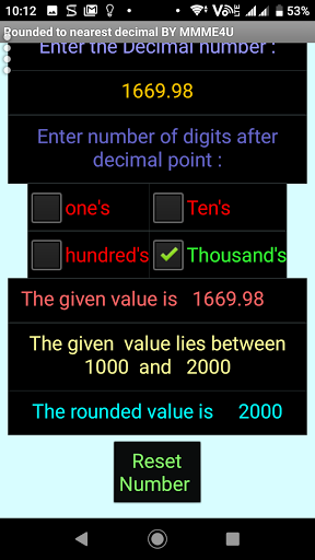 Rounded a given decimal to nearest Whole number around nearest 1 or 10 or 100 or 1000.