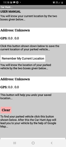 My app is used for finding you parked car or vehicle and takes you towards the vehicle with the help of google map. If the functioning are not clear I have also made a user manual for it
