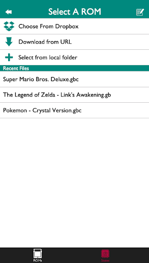 Open ROMs from local memory, SD card, DropBox and download from URLs
