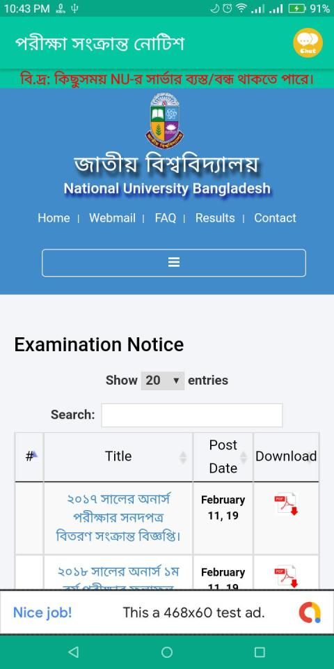 This app is one of the most important for all examinations of the National University, all recent notices, test routines, syllabus, and everything together. In addition, GPA calculator is available, which allows you to easily find GPA (accurate as per credit) from each year's results. You can download and download any notice / routine as well. Downloaded notifications will open the 'Downloads' app on your phone and view it later. Hope the app will come in handy for you. Thanks ...