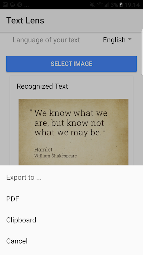 Take a picture or select an image from your gallery and extract its text with artificial intelligence. You can scan the text in 65 languages. After scanning you can modify the text and export it to clipboard or pdf.