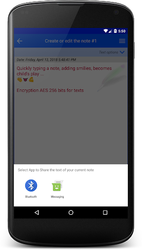 Encryption of text in A.E.S. 256 bits.