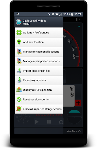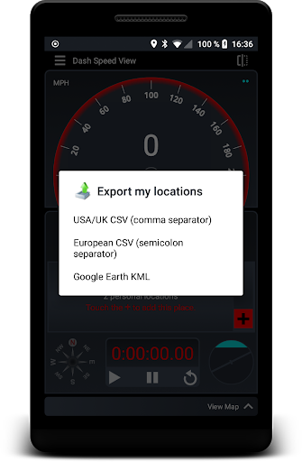 - Speedometer in KM/H, MPH, KT (setting in preferences)