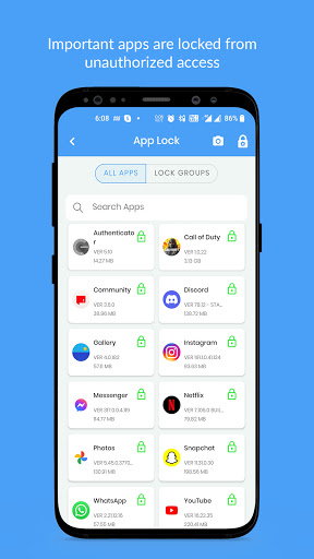 Lock individual or group of apps protected with passlock and pattern, Wifi, Bluetooth and Data