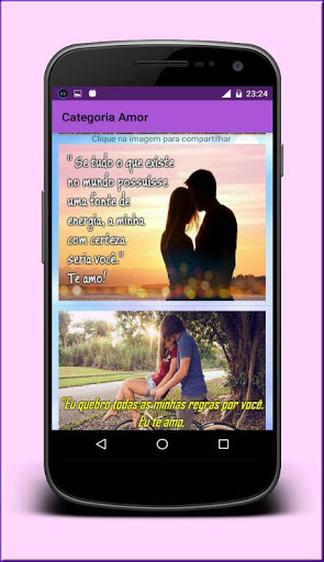 ??? São lindas mensagens de amor com mais de mil imagens disponíveis grátis. O app contém as seguintes Categorias - Bom Dia, Boa Tarde, Boa Noite, Amor, Coração, Feliz Aniversário, Beijos, Romântico, Paquera, Páscoa, Indiretas, Amizade, Amante, Tristeza, Dia dos Namorados, Abraços, Perdão, Casamento, Saudade, Natal e Ano Novo.
