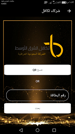 شركاء تكافل تطبيق يستخدم للتحقق من بطاقة تكافل الشرق الأوسط من قبل المراكز الشريكة لشركة تكافل الشرق الأوسط يمكن التحقق بثلاث طرق (مسح QR - إدخال رقم البطاقة - إدخال أخر خمس أرقام من البطاقة مع تحقق من سنة مواليد صاحب البطاقة)