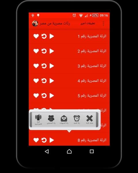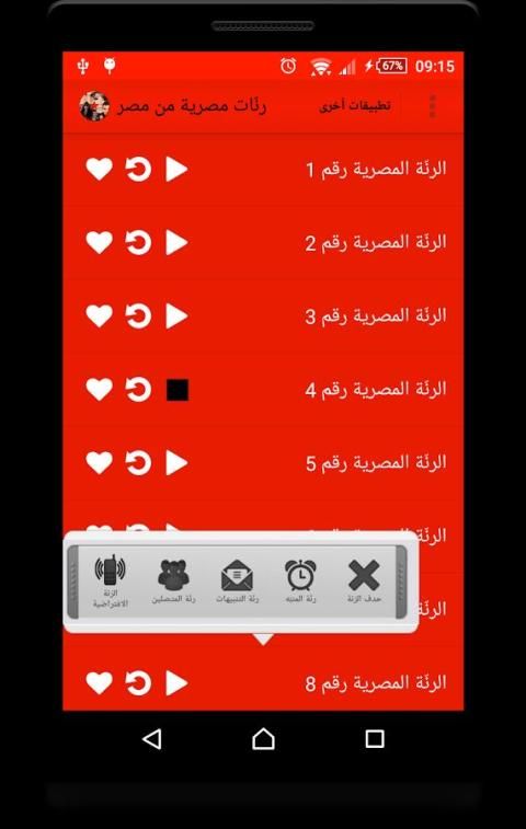 تطبيق رنات مصرية - نغمات مصرية يضيف الى هاتفك مجموعة متنوعة من الرنات والنغمات اللبنانية الرائعة مع امكانية تخصيص رنة مختلفة لكل متصل.