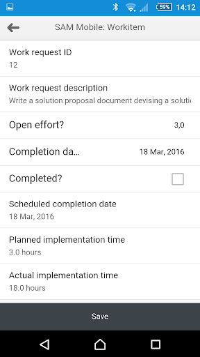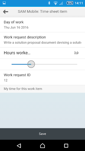 SAM mobile brings your company's Software Development Lifecycle (SDLC) to your mobile device. It makes otherwise tedious tasks like progress feedback and time sheet capture a lot more convenient for you.
