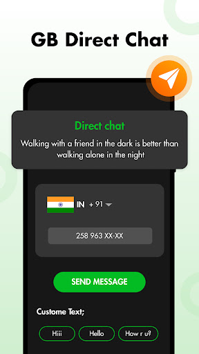 Direct chat: chat directly with WhatsApp users without saving names in contacts.